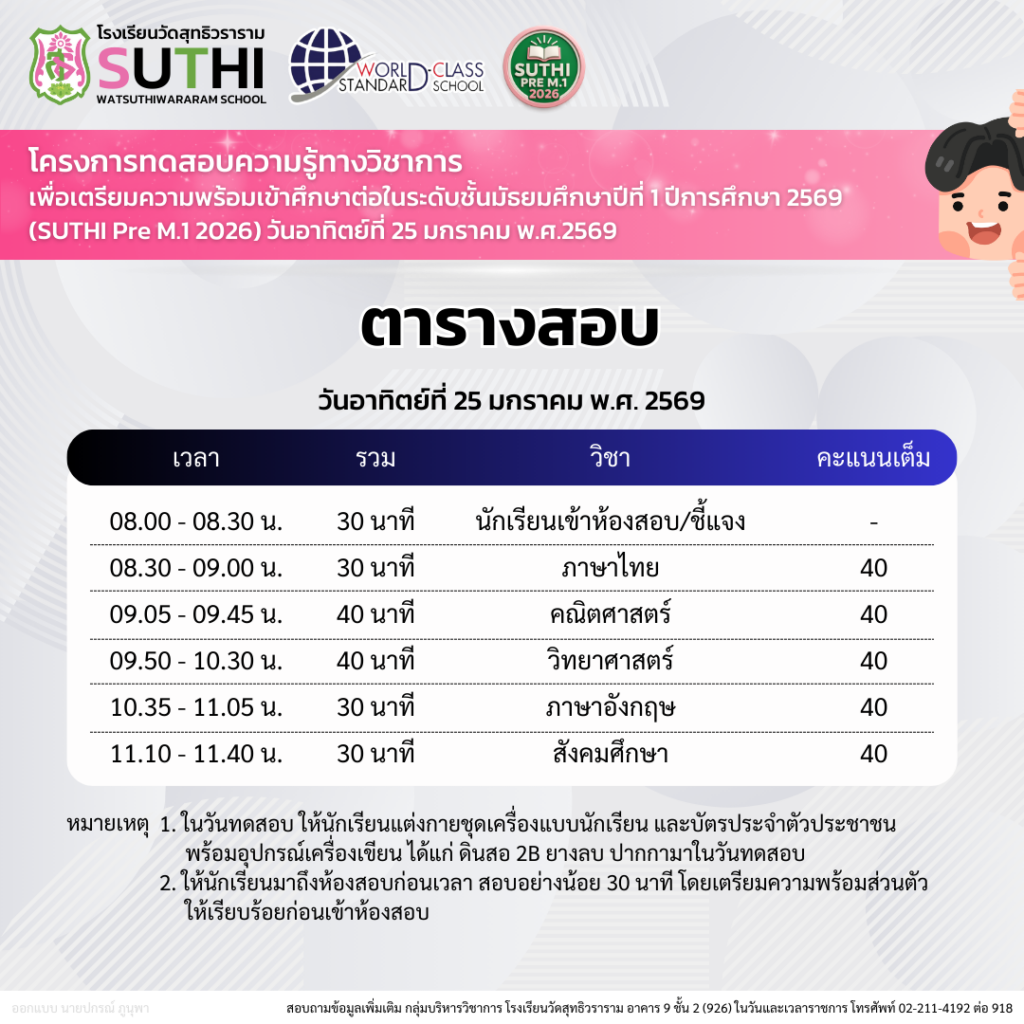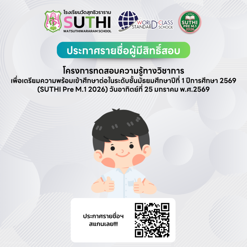 ประกาศรายชื่อผู้มีสิทธิ์สอบ – SUTHI PRE M.1 202624 มกราคม 2026Written by กลุ่มบริหารวิชาการ ประกาศรายชื่อผู้มีสิทธิ์สอบ – SUTHI PRE M.1 2026 ประกาศรายชื่อผู้มีสิทธิ์สอบ – SUTHI PRE M.1 2026 – 1_compressedดาวน์โหลด ยอดผู้เข้าชม : 483