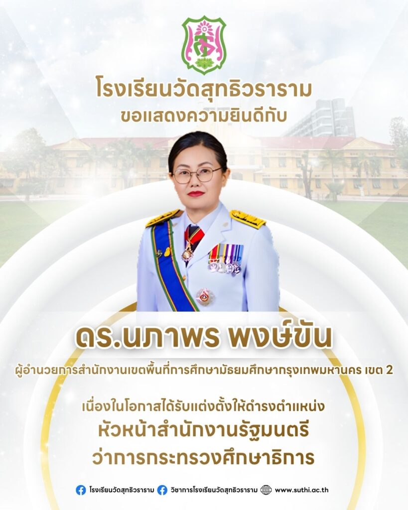 โรงเรียนวัดสุทธิวราราม ขอร่วมแสดงความยินดีกับ