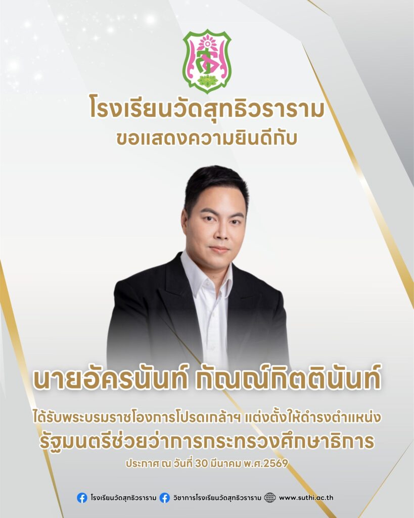 🎉 โรงเรียนวัดสุทธิวราราม ขอแสดงความยินดี 🎉