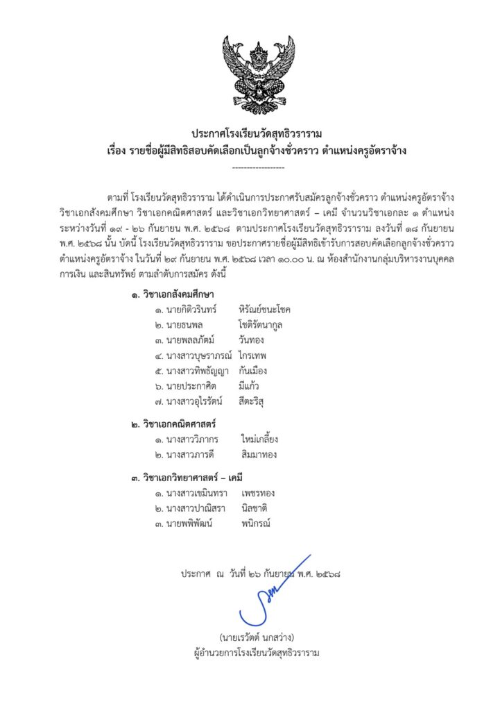 ประกาศรายชื่อผู้มีสิทธิ์สอบสัมภาษณ์ เป็นลูกจ้างชั่วคราว จำนวน 3 อัตรา26 กันยายน 2025Written by กลุ่มบริหารงานบุคคล