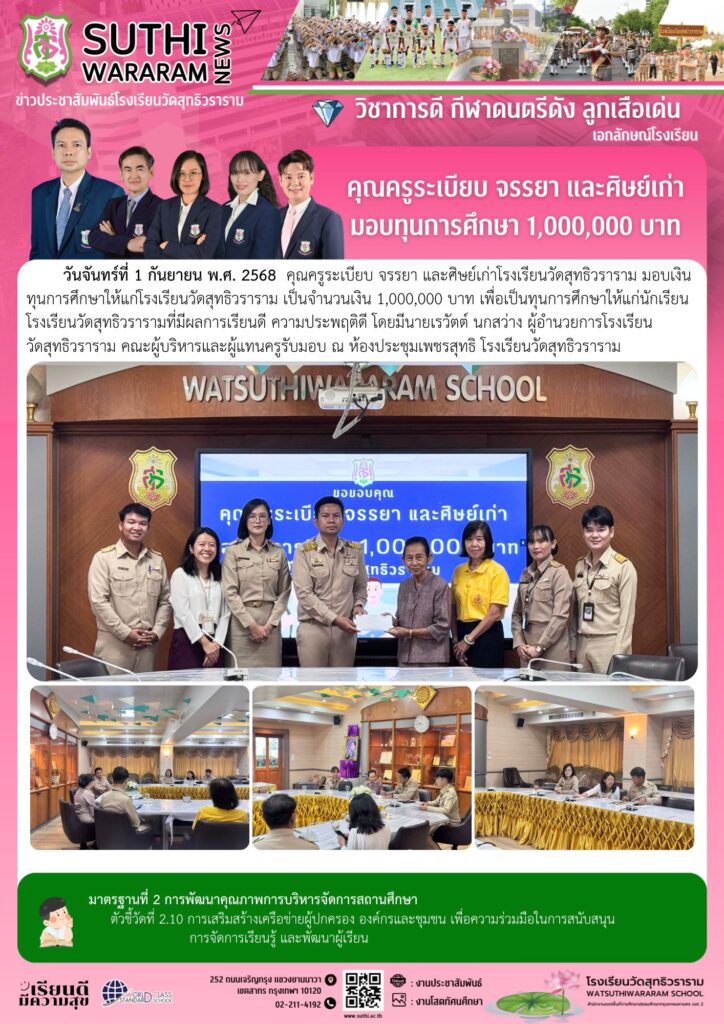 คุณครูระเบียบ จรรยา และศิษย์เก่า มอบทุนการศึกษา 1 ล้านบาท