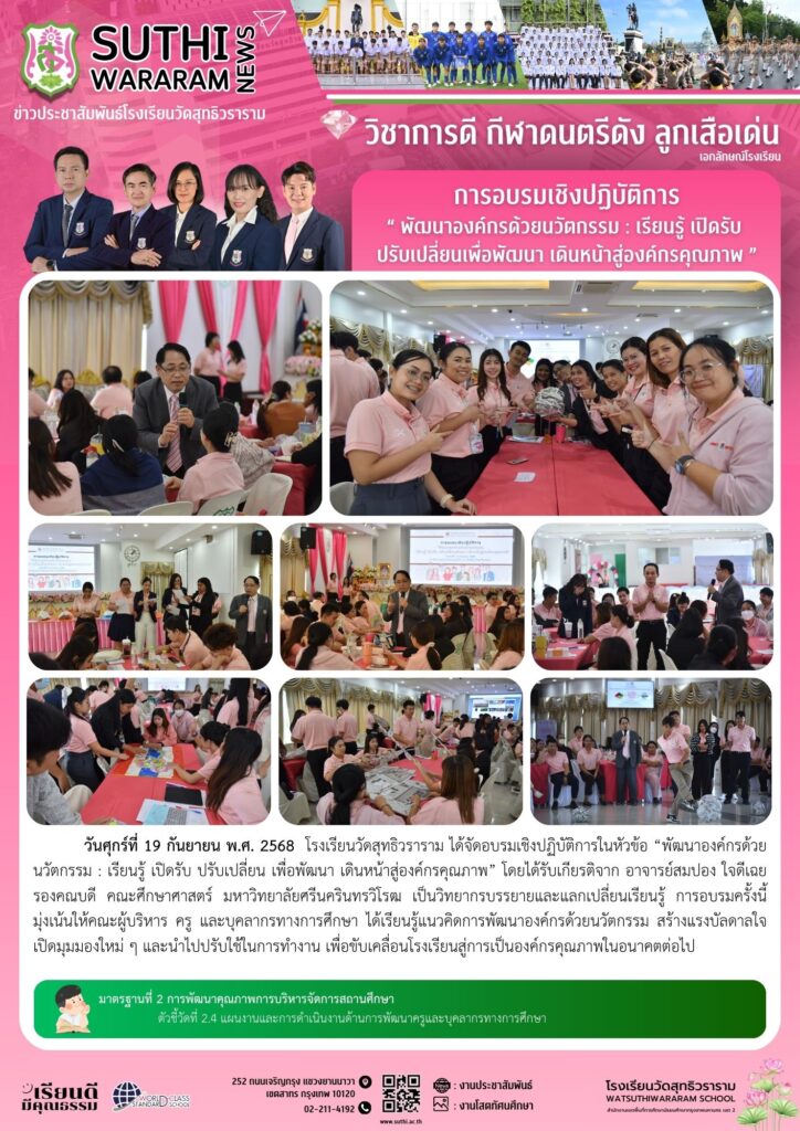 3. การอบรมเชิงปฏิบัติการ “พัฒนาองค์กรด้วยนวัตกรรม : เรียนรู้ เปิดรับ ปรับเปลี่ยนเพื่อพัฒนา เดินหน้าสู่องค์กรคุณภาพ”