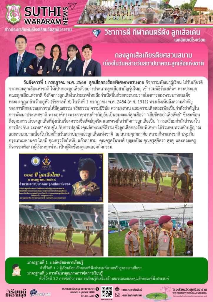 กองลูกเสือเกียรติยศสวนสนาม เนื่องในวันคล้ายวันสถาปนาคณะลูกเสือแห่งชาติ1 กรกฎาคม 2025Written by งานประชาสัมพันธ์