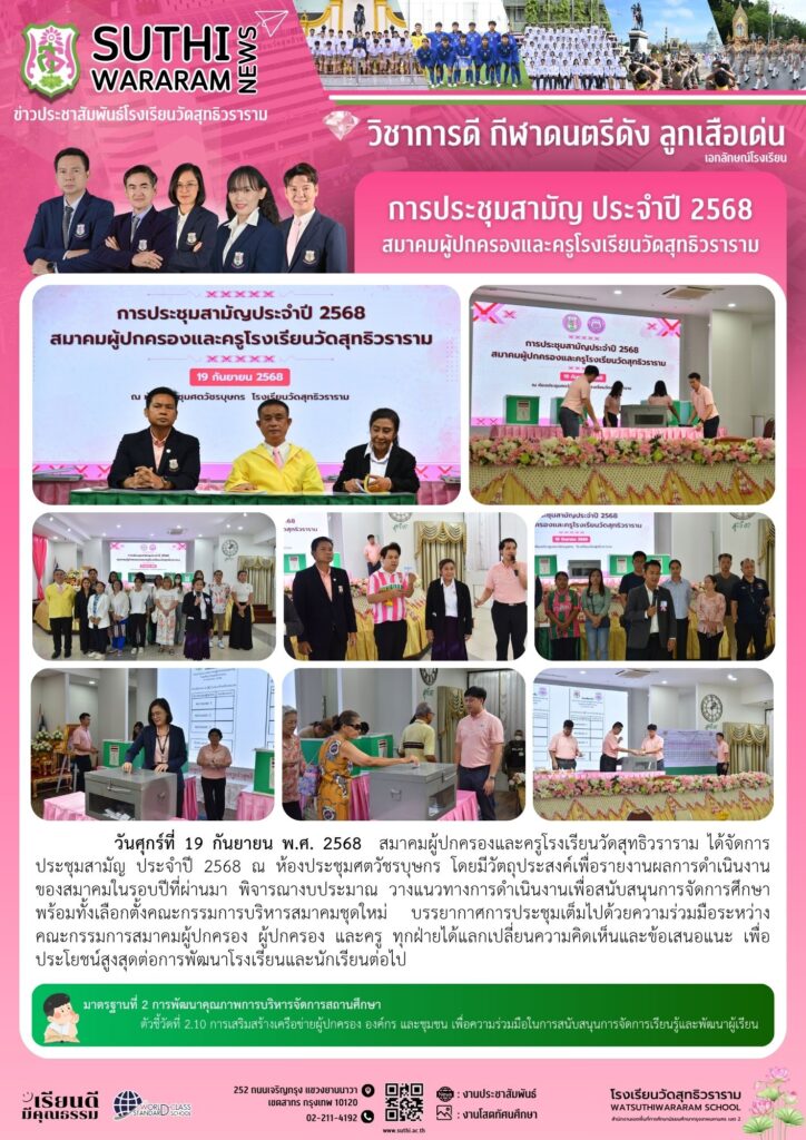 การประชุมสามัญ ประจำปี 2568 สมาคมผู้ปกครองและครูโรงเรียนวัดสุทธิวราราม19 กันยายน 2025Written by งานประชาสัมพันธ์