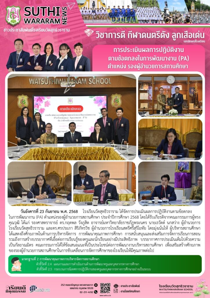 การประเมินผลการปฏิบัติงาน ตามข้อตกลงในการพัฒนางาน (PA) ตำแหน่ง รองผู้อำนวยการสถานศึกษา23 กันยายน 2025Written by งานประชาสัมพันธ์