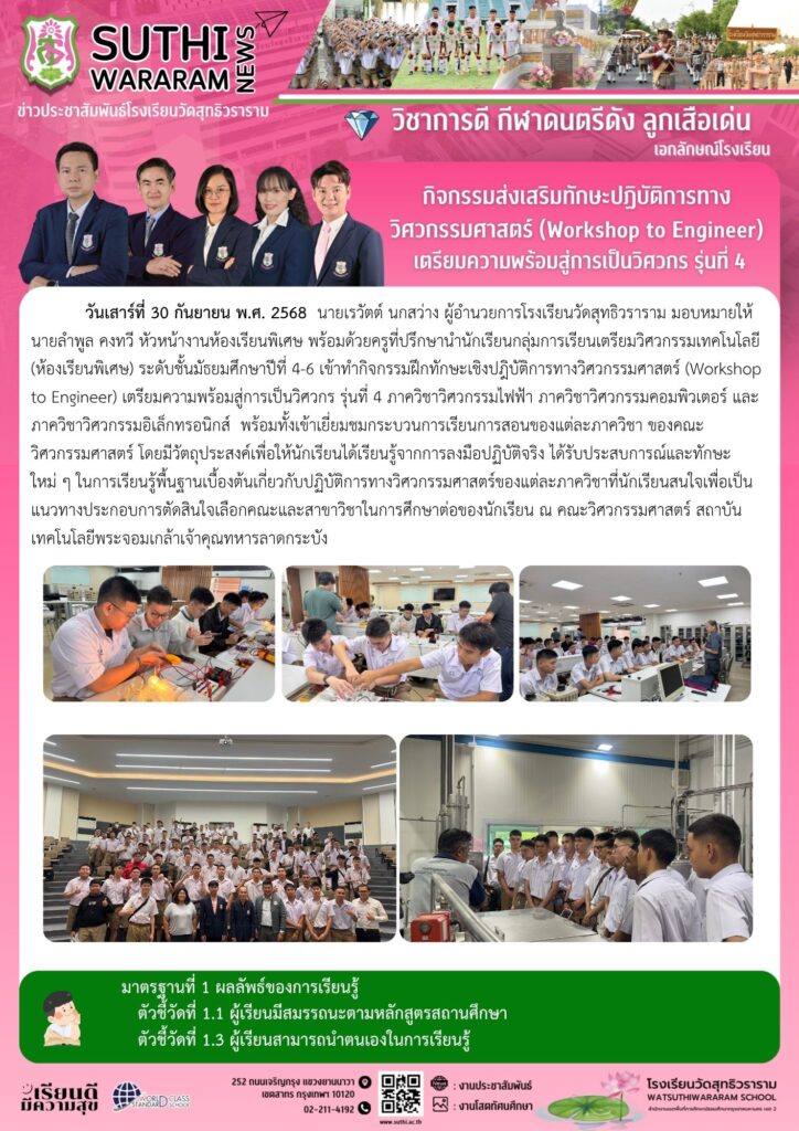 กิจกรรมส่งเสริมทักษะปฏิบัติการทางวิศวกรรมศาสตร์ (Workshop to Engineer) เตรียมความพร้อมสู่การเป็นวิศวกร รุ่นที่ 4