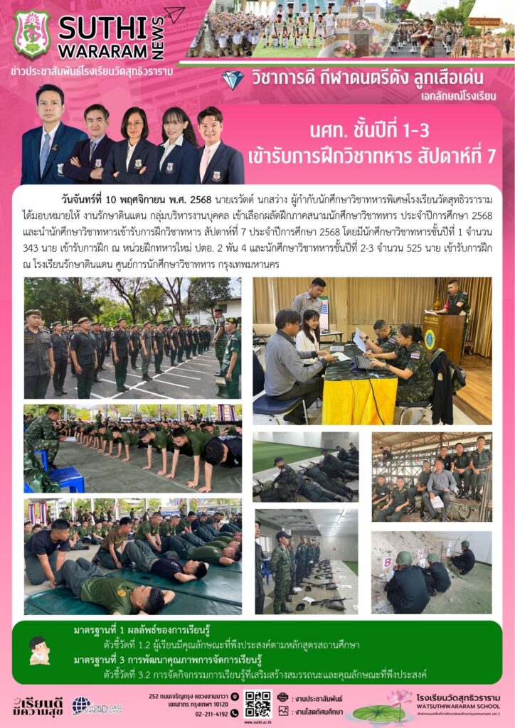 นักศึกษาวิชาทหาร ชั้นปีที่ 1-3 เข้ารับการฝึกวิชาทหาร สัปดาห์ที่ 710 พฤศจิกายน 2025Written by งานประชาสัมพันธ์