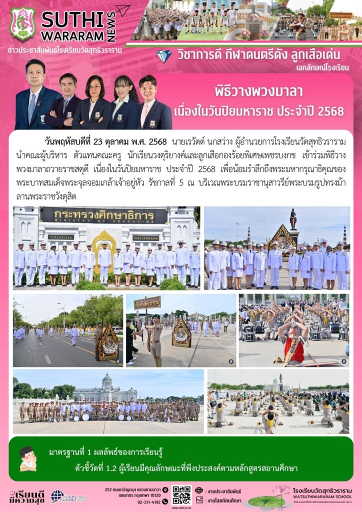 พิธีวางพวงมาลา เนื่องในวันปิยมหาราช ประจำปี 256823 ตุลาคม 2025Written by งานประชาสัมพันธ์ ยอดผู้เข้าชม : 15