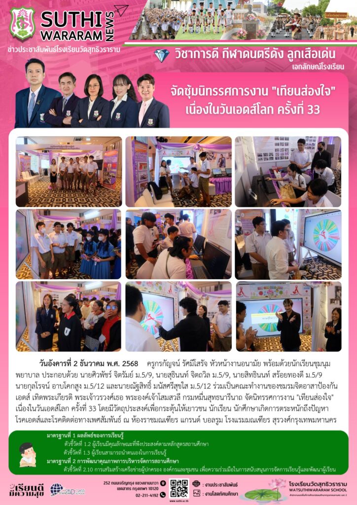 จัดซุ้มนิทรรศการงาน “เทียนส่องใจ” เนื่องในวันเอดส์โลก ครั้งที่ 332 ธันวาคม 2025Written by งานประชาสัมพันธ์ ยอดผู้เข้าชม : 13