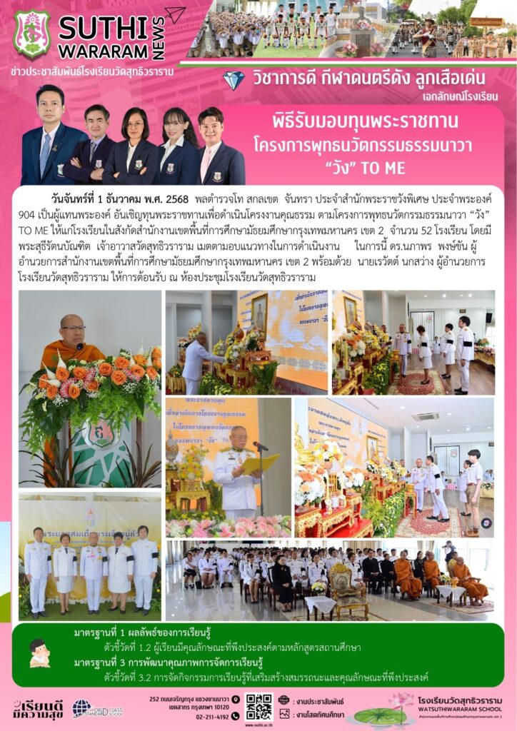 พิธีรับมอบทุนพระราชทาน โครงการพุทธนวัตกรรมธรรมนาวา “วัง” TO ME1 ธันวาคม 2025Written by งานประชาสัมพันธ์ ยอดผู้เข้าชม : 23