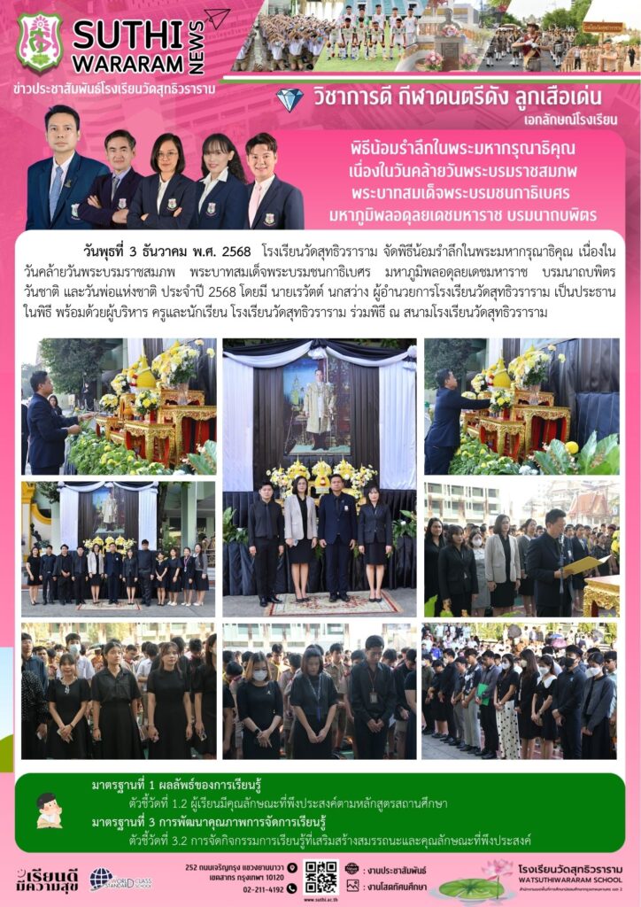 พิธีน้อมรำลึกในพระมหากรุณาธิคุณ เนื่องในวันคล้ายวันพระบรมราชสมภพ พระบาทสมเด็จพระบรมชนกาธิเบศร มหาภูมิพลอดุลยเดชมหาราช บรมนาถบพิตร3 ธันวาคม 2025Written by งานประชาสัมพันธ์ ยอดผู้เข้าชม : 23