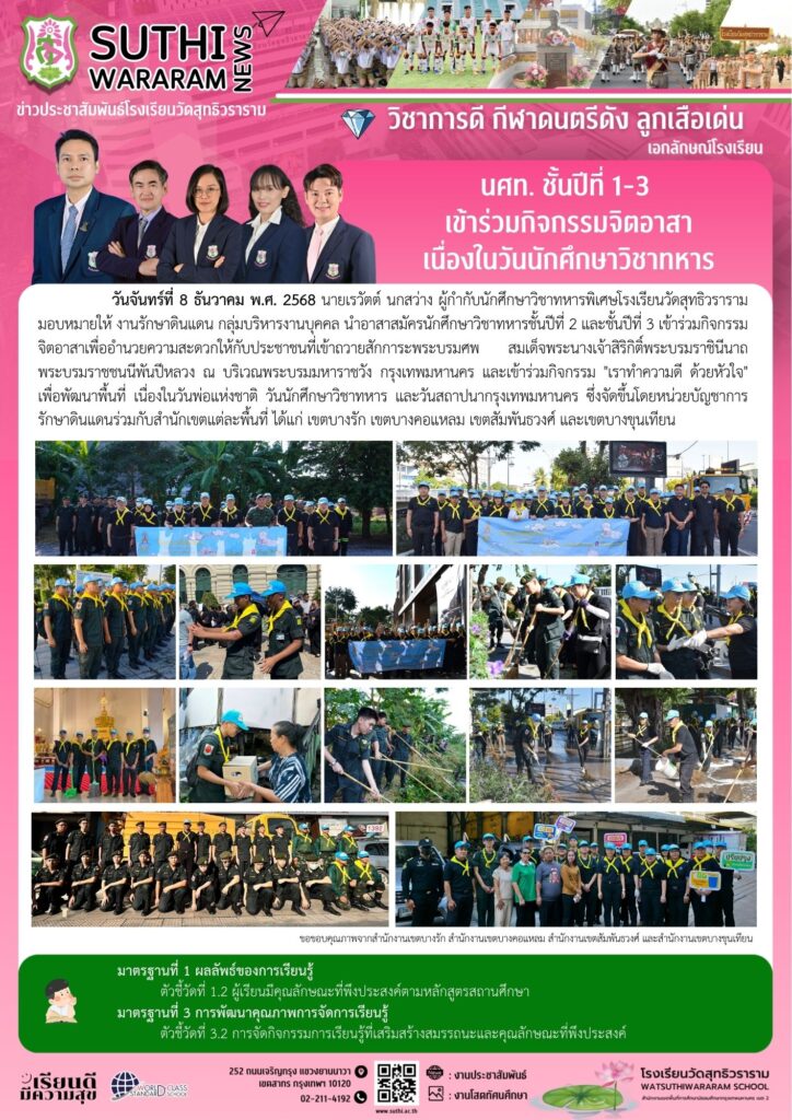 นักศึกษาวิชาทหาร ชั้นปีที่ 1-3 เข้าร่วมกิจกรรมจิตอาสา เนื่องในวันนักศึกษาวิชาทหาร8 ธันวาคม 2025Written by งานประชาสัมพันธ์ ยอดผู้เข้าชม : 40