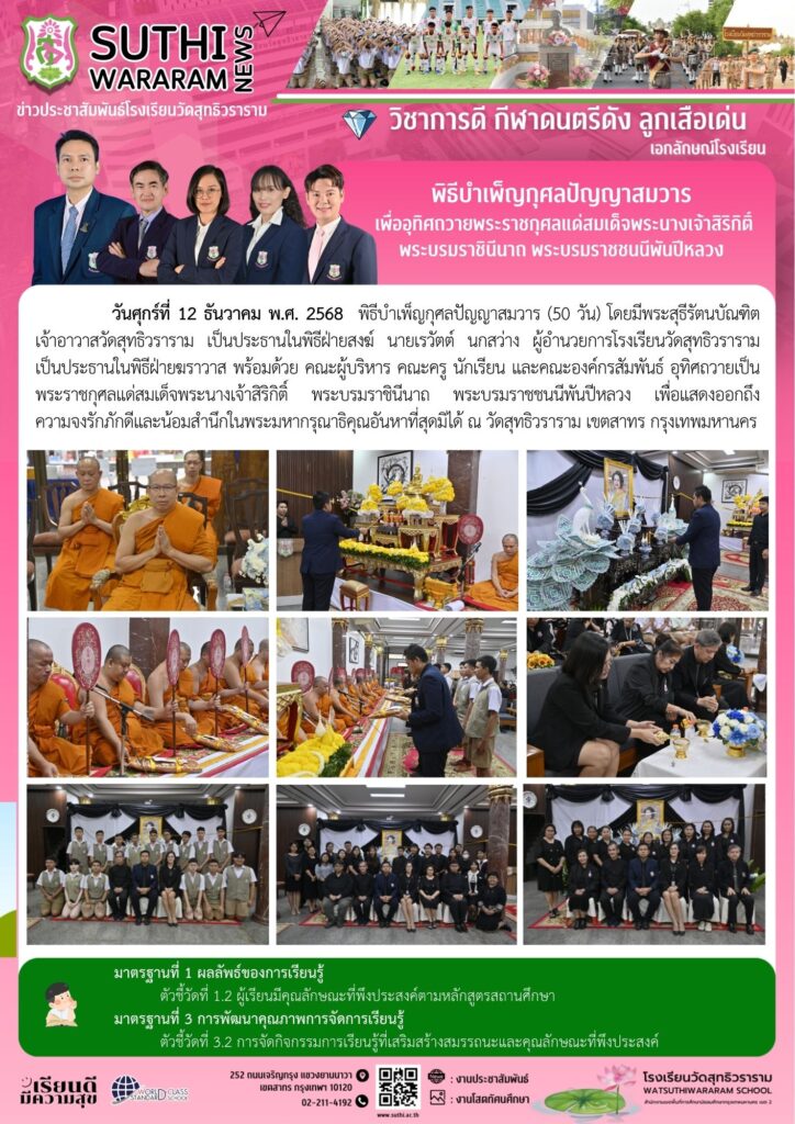พิธีบำเพ็ญกุศลปัญญาสมวาร เพื่ออุทิศถวายพระราชกุศลแด่สมเด็จพระนางเจ้าสิริกิติ์ พระบรมราชินีนาถ พระบรมราชชนนีพันปีหลวง12 ธันวาคม 2025Written by งานประชาสัมพันธ์ ยอดผู้เข้าชม : 12