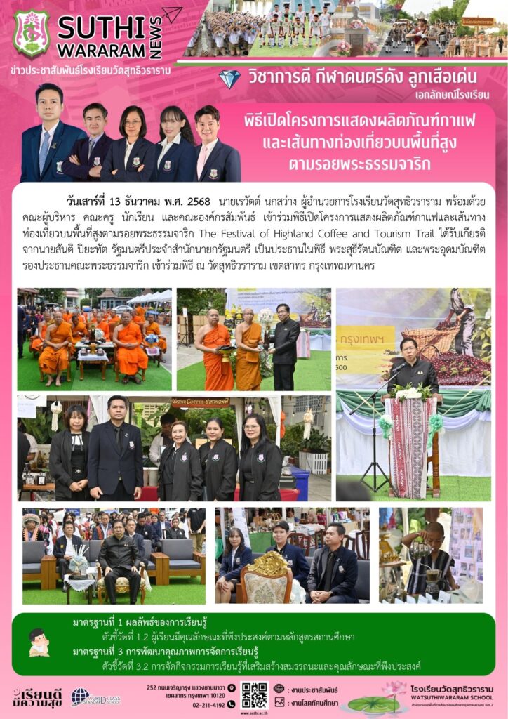 พิธีเปิดโครงการแสดงผลิตภัณฑ์กาแฟ และเส้นทางท่องเที่ยวบนพื้นที่สูง ตามรอยพระธรรมจาริก13 ธันวาคม 2025Written by งานประชาสัมพันธ์ ยอดผู้เข้าชม : 14