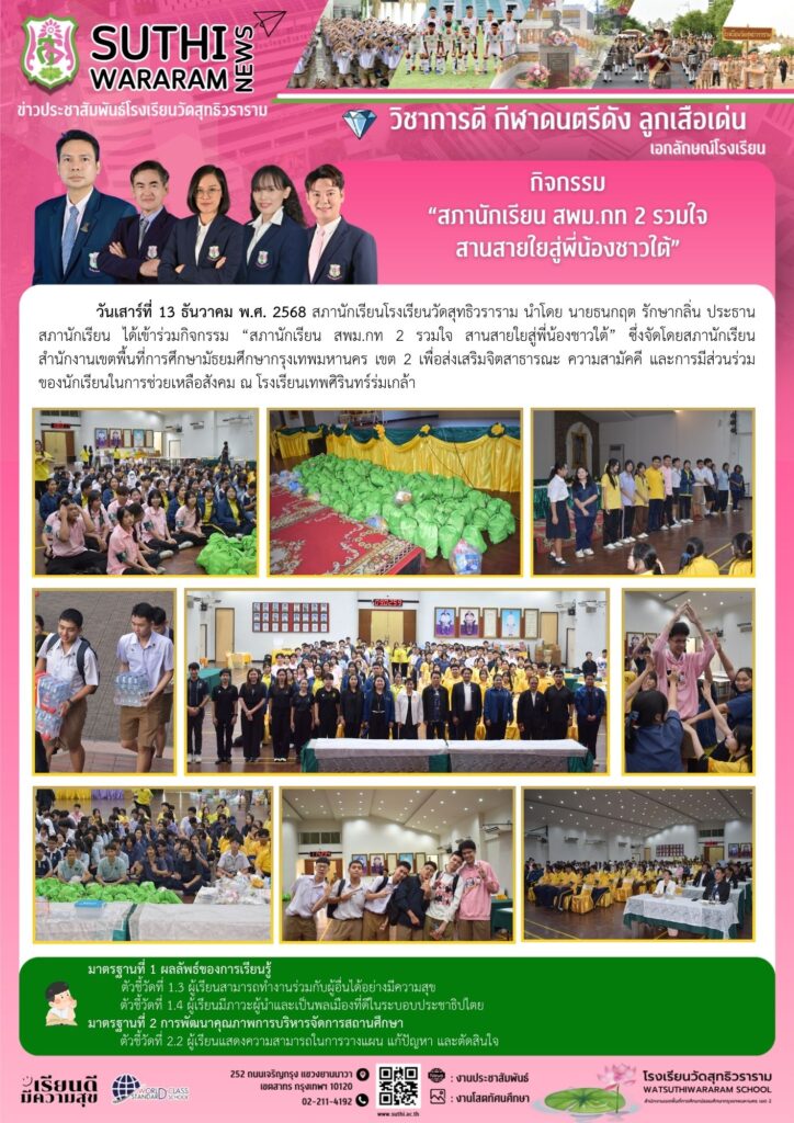 กิจกรรม “สภานักเรียน สพม. กท 2 รวมใจ สานสายใยสู่พี่น้องชาวใต้”13 ธันวาคม 2025Written by งานประชาสัมพันธ์ ยอดผู้เข้าชม : 17