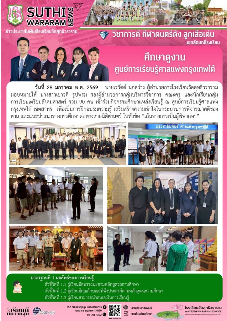 ศึกษาดูงาน ศูนย์การเรียนรู้ศาลแพ่งกรุงเทพใต้28 มกราคม 2026Written by งานประชาสัมพันธ์ ยอดผู้เข้าชม : 3