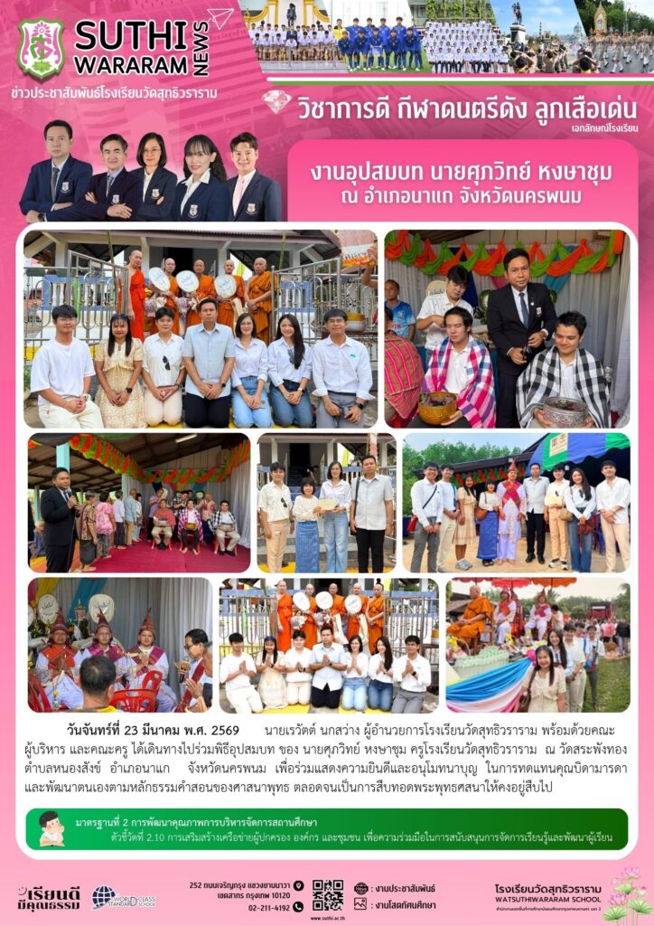งานอุปสมบท นายศุภวิทย์ หงษาชุม ครูโรงเรียนวัดสุทธิวราราม ณ อำเภอนาแก จังหวัดนครพนม23 มีนาคม 2026Written by งานประชาสัมพันธ์ ยอดผู้เข้าชม : 4