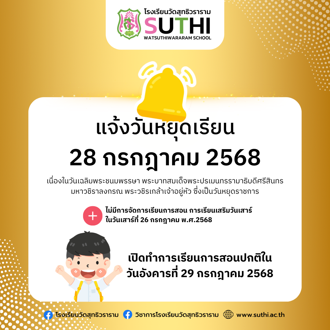 🔔 āđāļˆāđ‰āļ‡āļ§āļąāļ™āļŦāļĒāļļāļ”āđ€āļĢāļĩāļĒāļ™āđ‚āļĢāļ‡āđ€āļĢāļĩāļĒāļ™āļ§āļąāļ”āļŠāļļāļ—āļ˜āļīāļ§āļĢāļēāļĢāļēāļĄ āļŦāļĒāļļāļ”āđ€āļĢāļĩāļĒāļ™āļ§āļąāļ™āļ—āļĩāđˆ 28 āļāļĢāļāļŽāļēāļ„āļĄ 2568