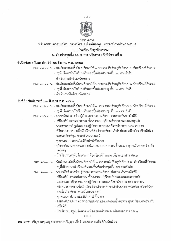 กำหนดการพิธีมอบประกาศนียบัตร เกียรติบัตร และโล่เกียรติคุณ ประจำปีการศึกษา 256814 มีนาคม 2026Written by กลุ่มบริหารวิชาการ ยอดผู้เข้าชม : 15