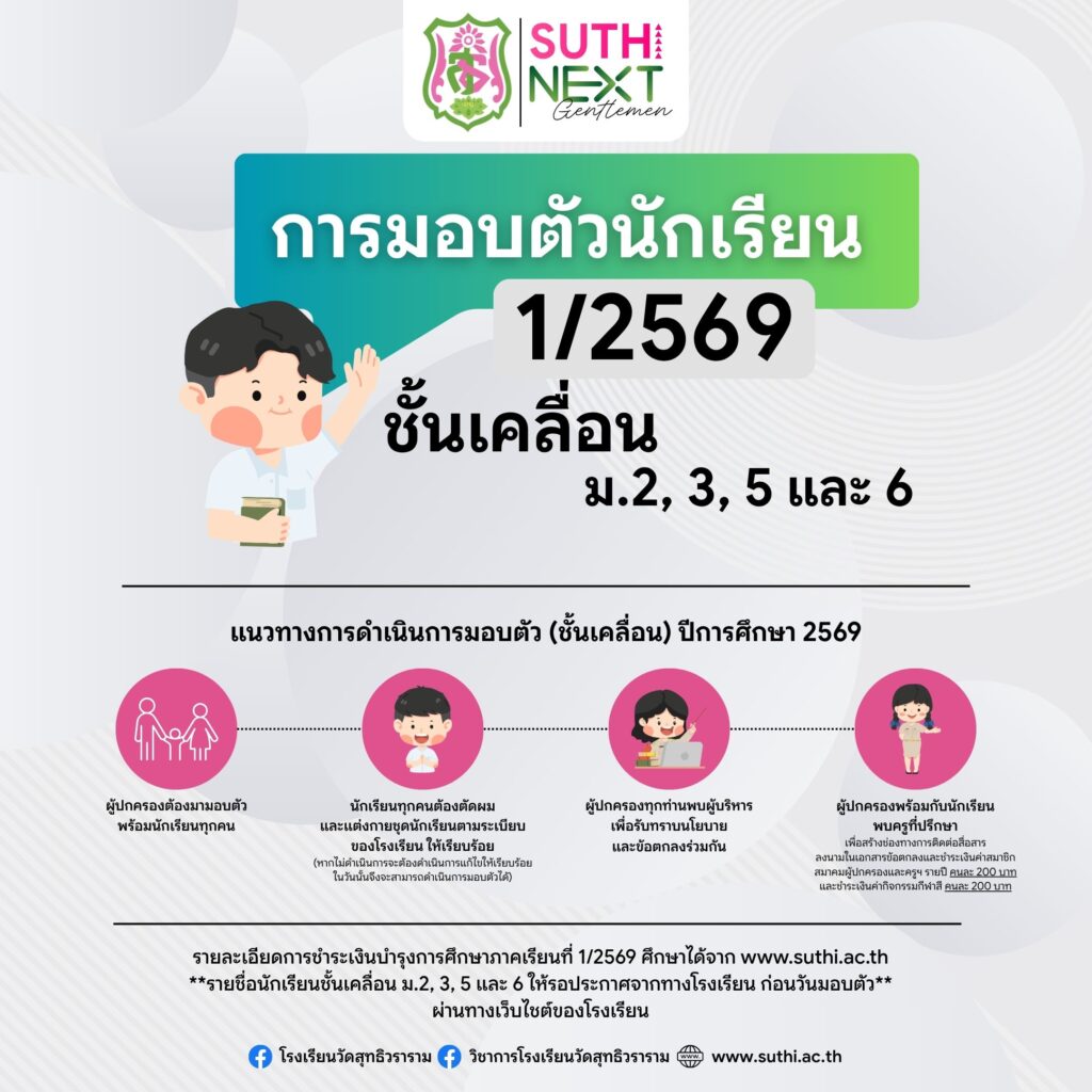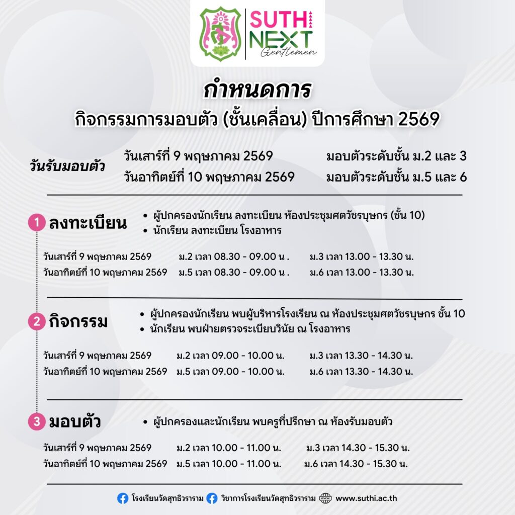 กำหนดการรับมอบตัวนักเรียน – ระดับชั้นมัธยมศึกษาปีที่ 2, 3, 5 และ 6 (ชั้นเคลื่อน) ปีการศึกษา 256922 เมษายน 2026Written by กลุ่มบริหารงบประมาณ กำหนดการมอบตัวชั้นเคลื่อนดาวน์โหลด ยอดผู้เข้าชม : 348